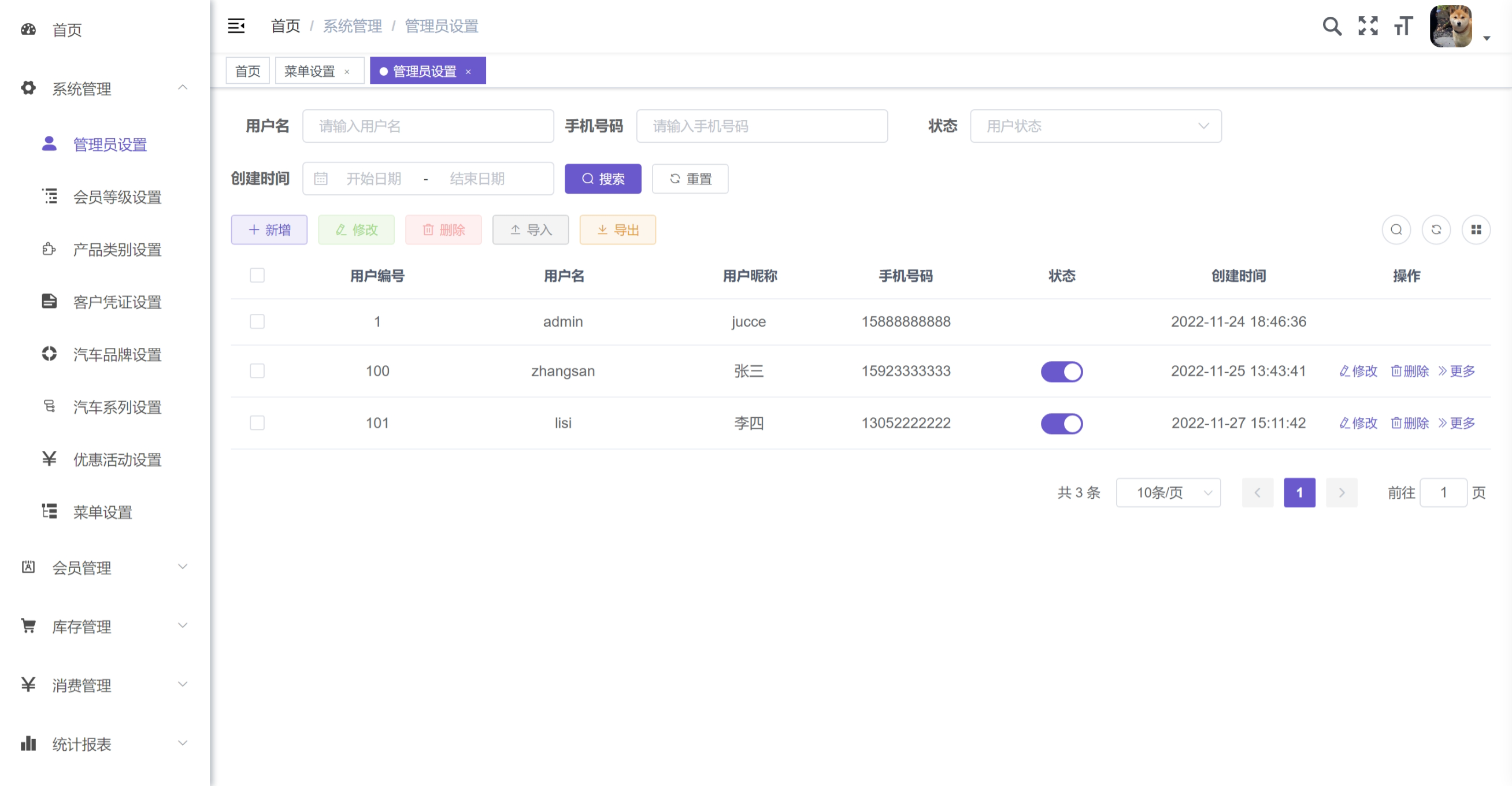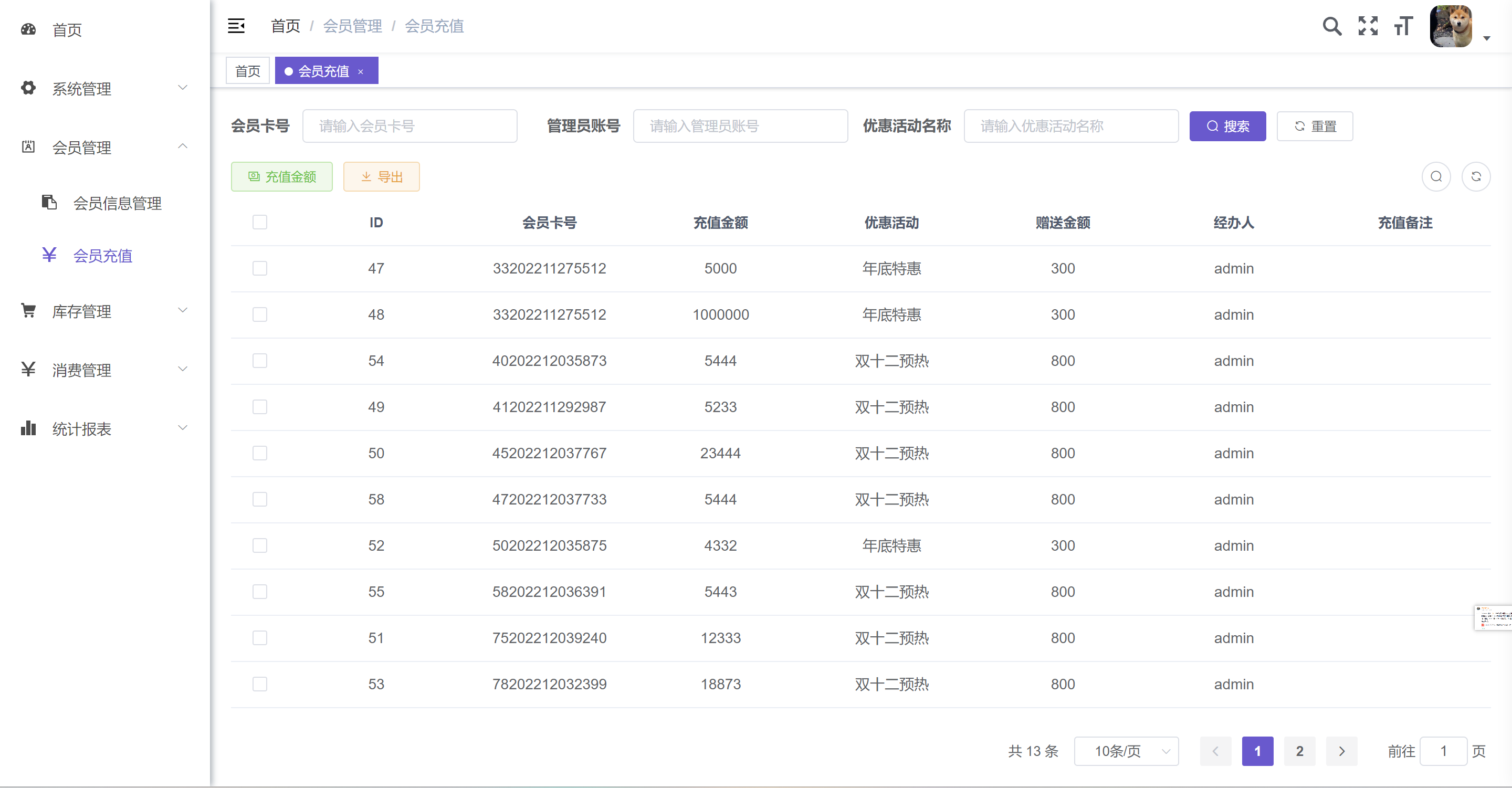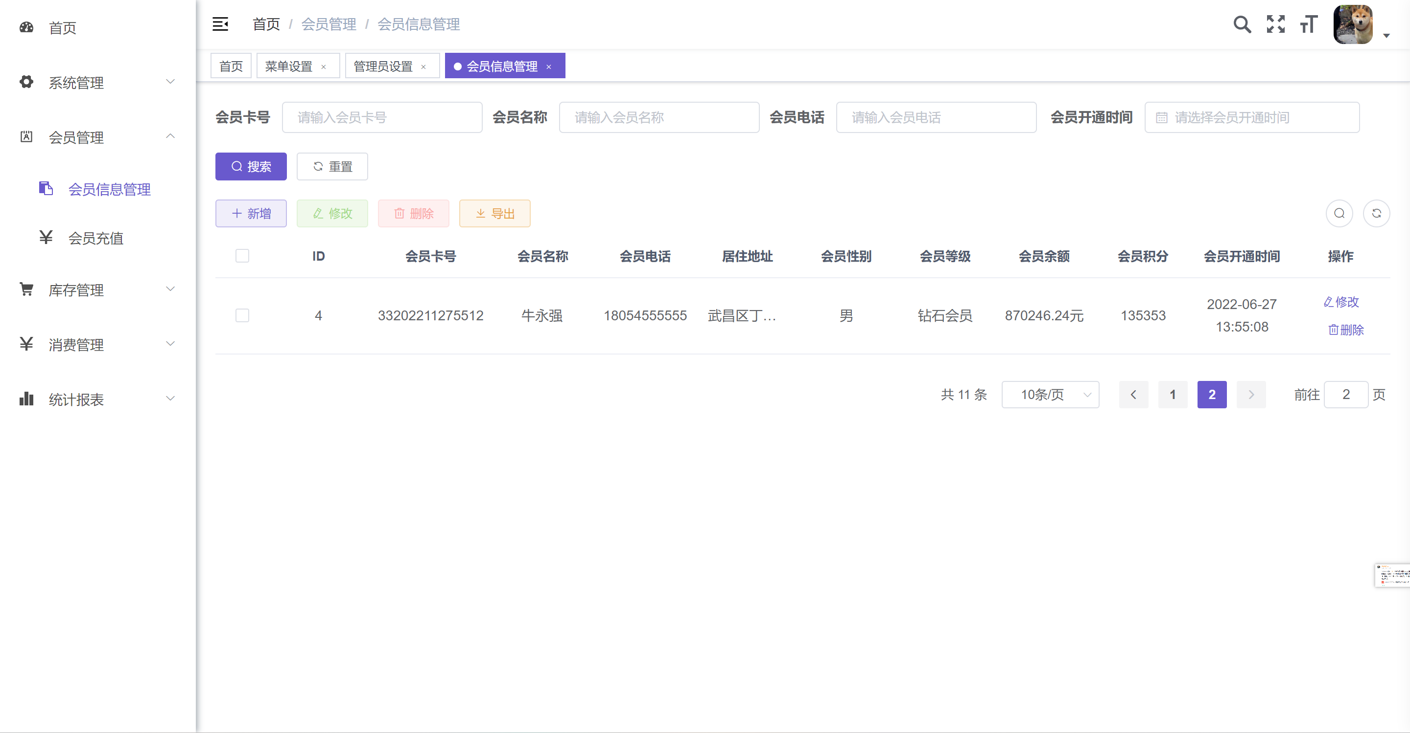 2. 会员信息管理:会员信息的录入和管理。