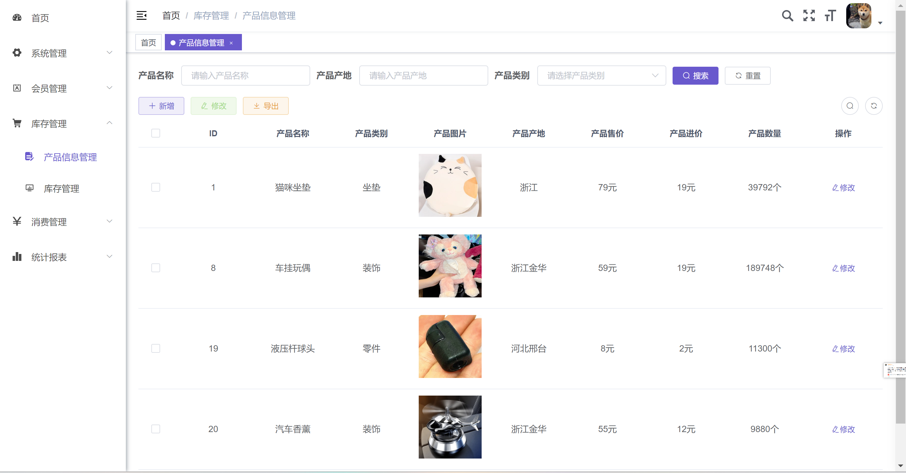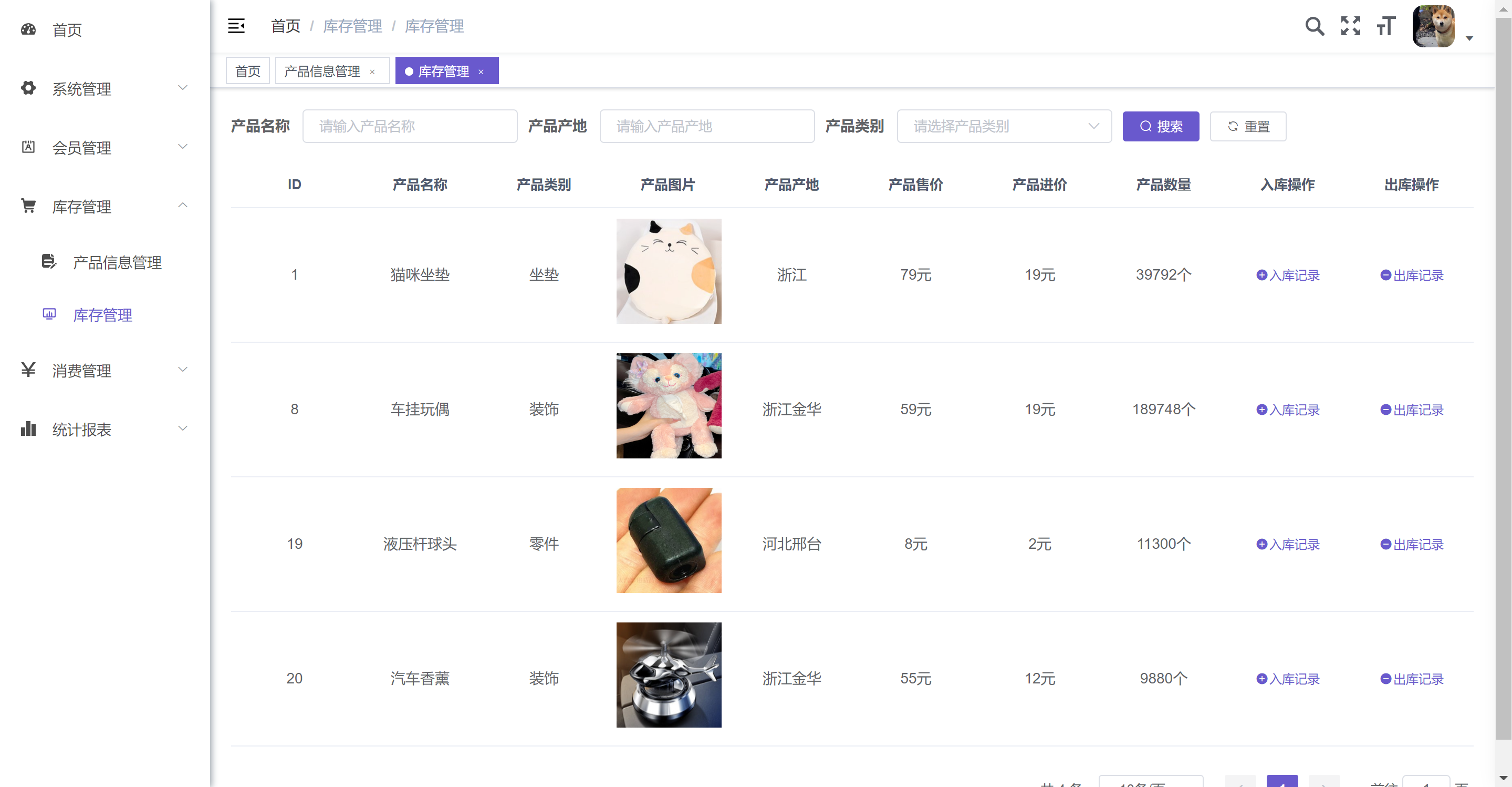 5. 库存管理:产品的入库和出库功能。