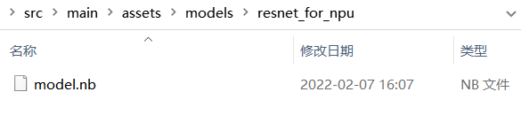 创建子文件夹resnet_for_npu,将上述步骤生成的.nb文件下载到本地,并改名为model.nb