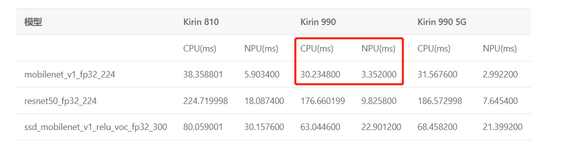 由下图可见,NPU上的运算速率是CPU的数倍: