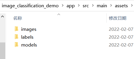 * 在strings.xml文件中修改三行字符:在 models/ labels/ images/ 后修改为上文添加文件的名称。