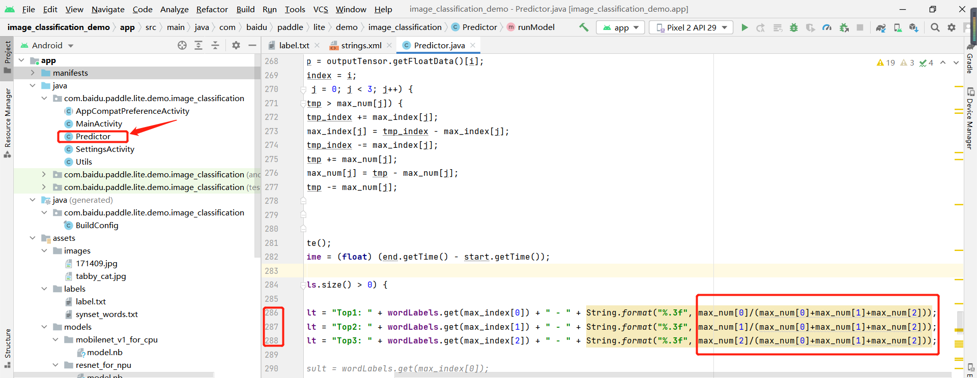 * 在Predictor.java文件中修改三行代码,改为如下内容: